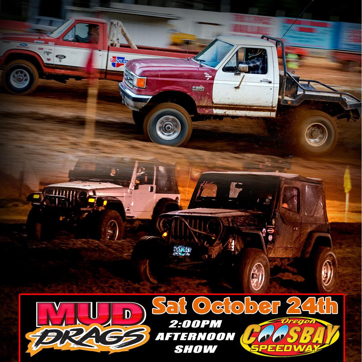 Mud Drags are back this weekend for the final mud show of the 2020 racing season at Coos Bay Speedway. Be here on Saturday, October 24th for some fun side by side racing action in the muddy drag strip. This is an afternoon show starting at 2pm, Help us fill the pits with trucks this weekend, and let's go out with a bang!