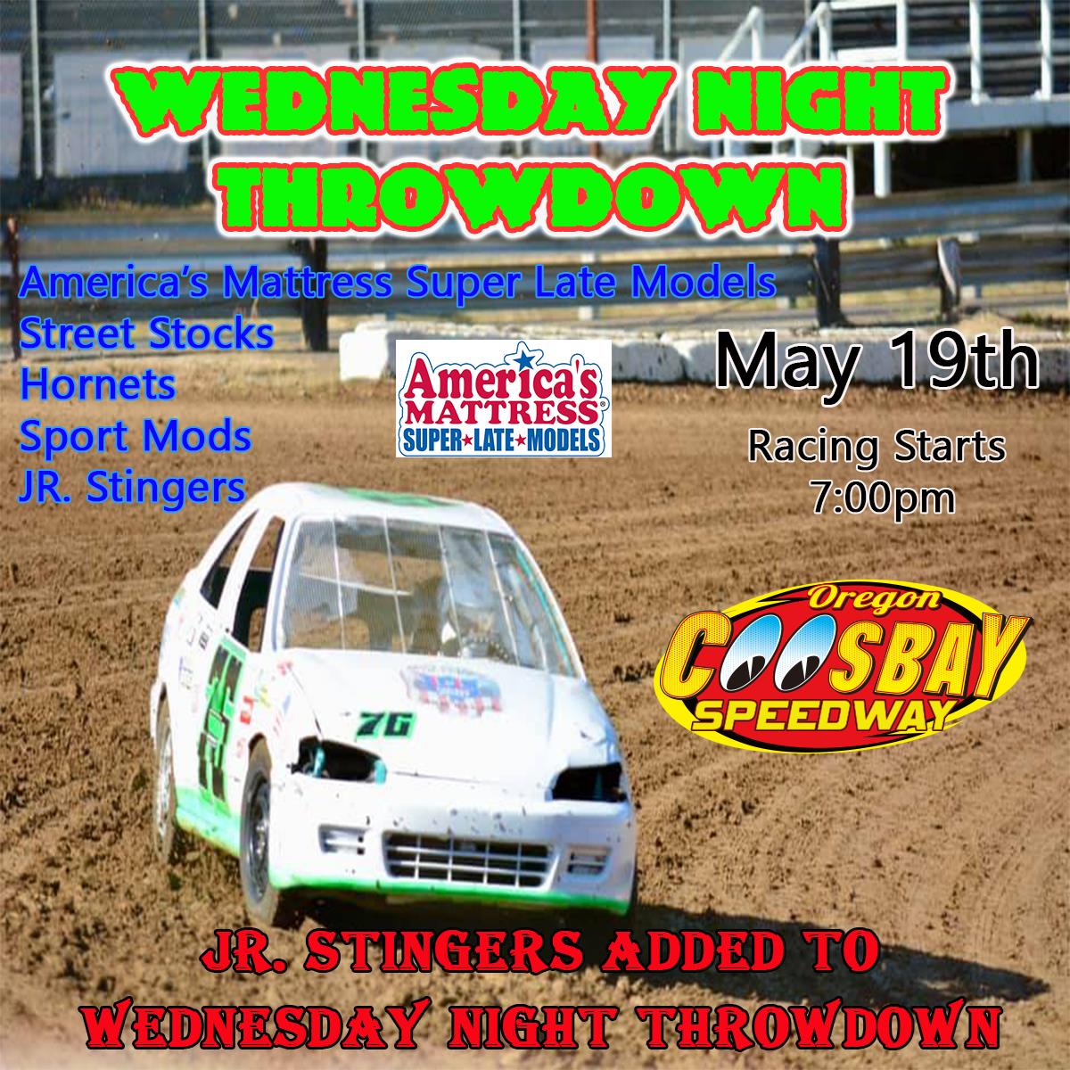 ATTN JR STINGERS: We have added the JR. Stingers to Wednesday Night's Throwdown on May 19th for a Non-Points racing event. This will be a good opportunity for some extra track time for those that want it. Wednesday will be a fast-paced event so we can get you home and to bed to be ready for school the next morning!