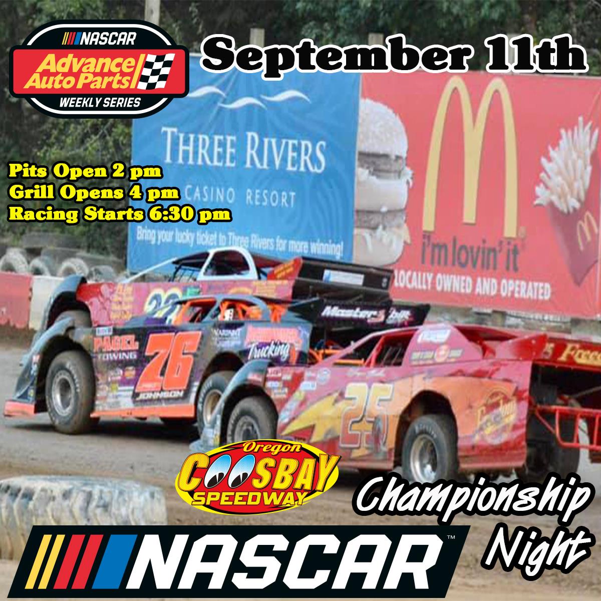 It's almost time for Championship night here at the Coos Bay Speedway, join us for a fun-filled Saturday night on the NASCAR Oval as we will crown the champions in all 6 divisions that race on a weekly basis.