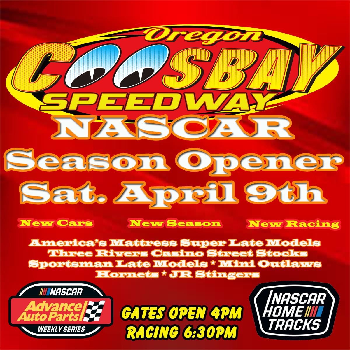 It's time to swing open the gates to the NASCAR racing season at the Coos Bay Speedway. Be sure to be at the speedway to see all the new cars battle it out to win that first feature of the season!