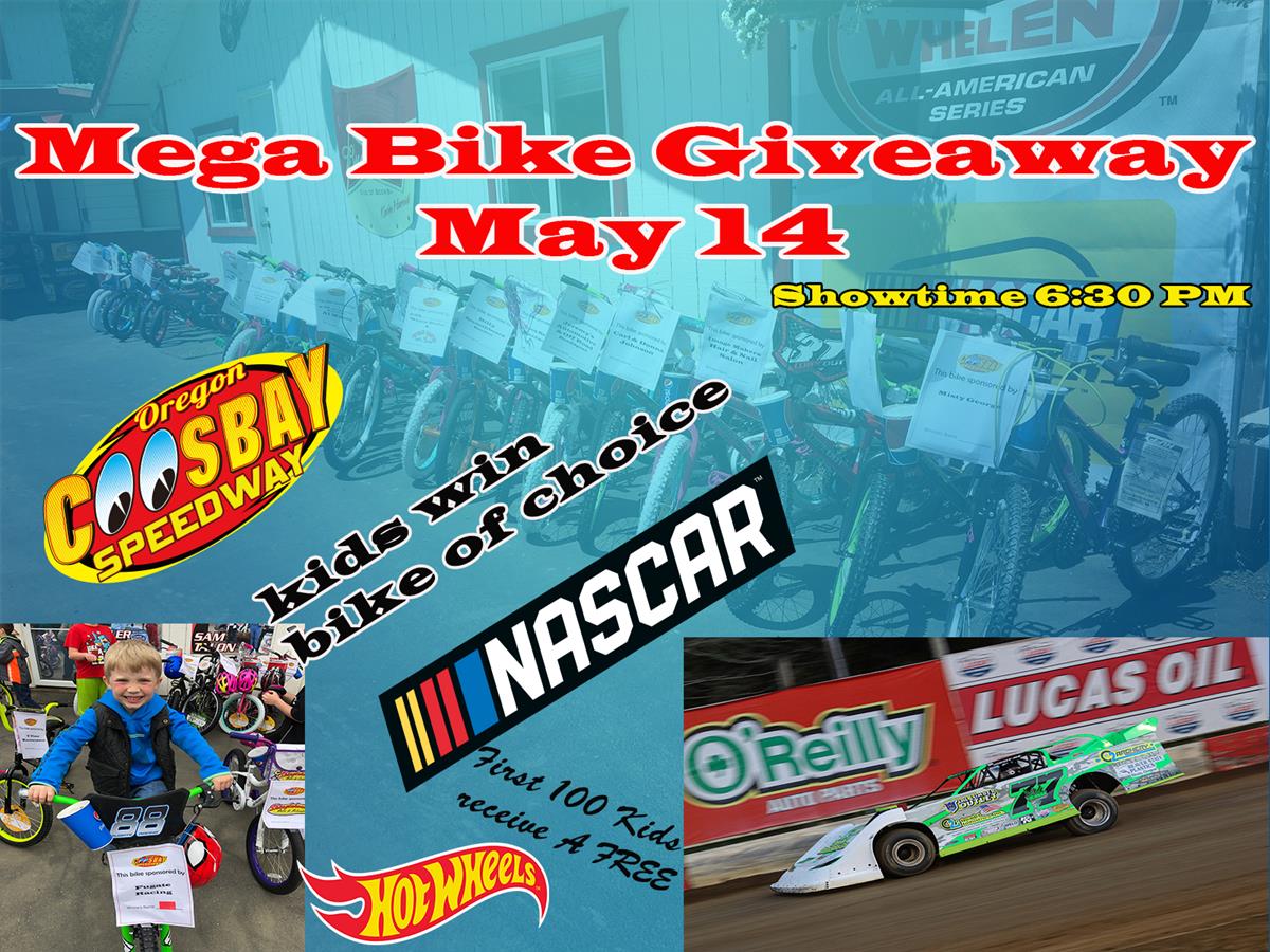 It's that time of year when we get to give away a lot of bikes to young kids at the Coos Bay Speedway! It's the Mega Bike giveaway and we are currently seeking bike donations for this fun evening for the kids in attendance at the speedway.