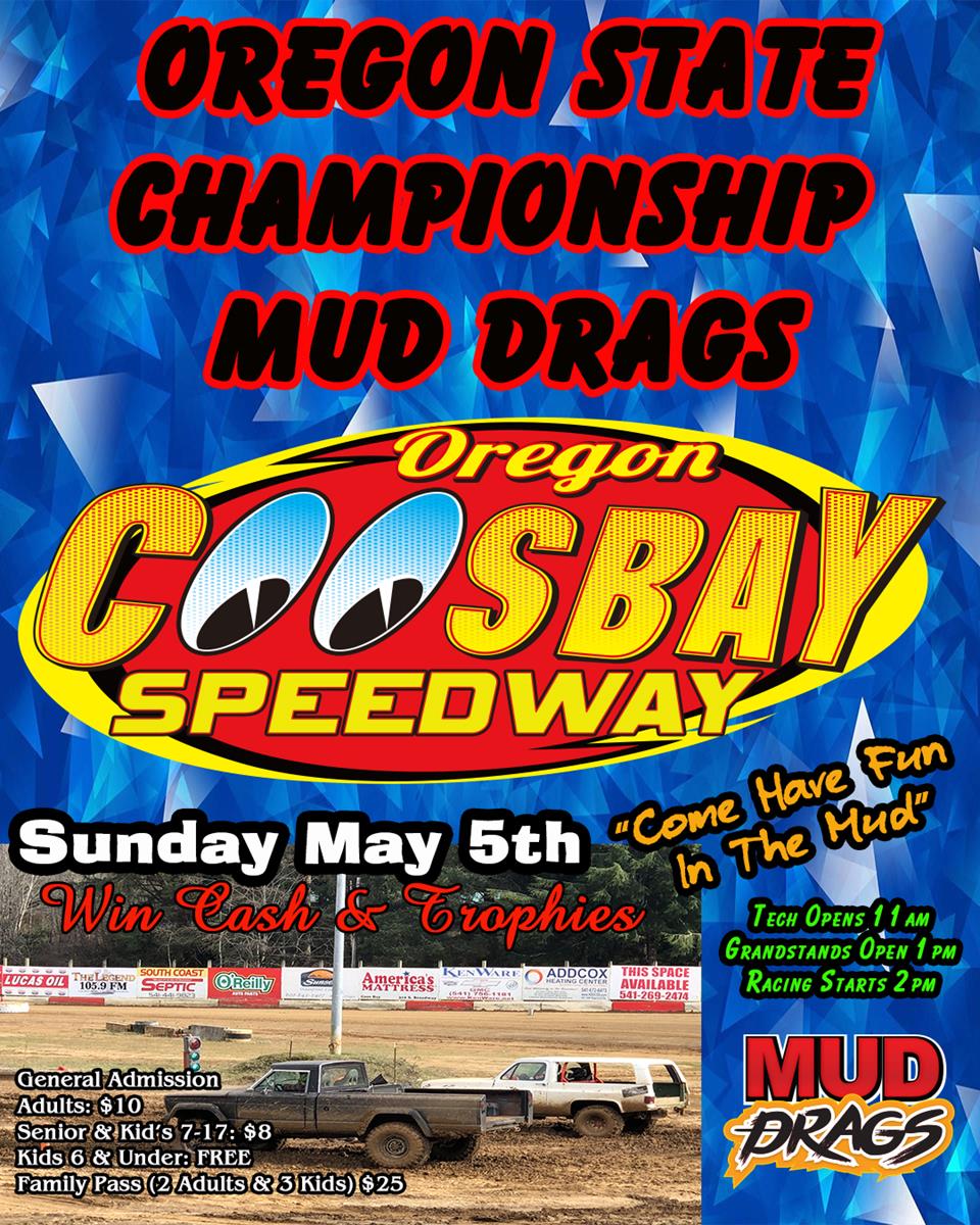 It's getting to be close to time for the Oregon State Championship Mud Drags at the Coos Bay Speedway. This fun event is sure to be a good one as the Mud is just about right at this time of year for some fast double-elimination side-by-side mud racing. Bring your truck out to the speedway as we have a class for everyone.